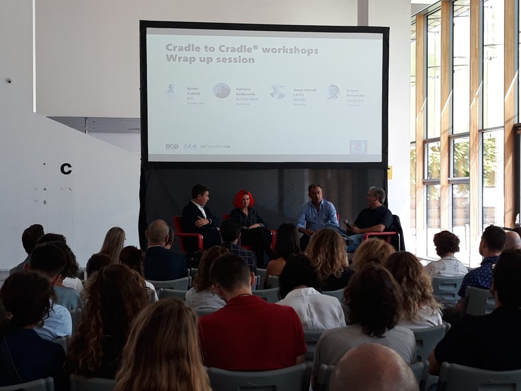 Los talleres se llevaron a cabo en paralelo y se articularon en base a 3 ejes: MODA, CONSTRUCCIÓN y PACKAGING. Cada uno de ellos estuvo liderado por una empresa referente en su sector, que compartió su experiencia en un diálogo abierto, invitando a los participantes a colaborar en la búsqueda de soluciones a desafíos concretos, de acuerdo con el marco de diseño propuesto por la metodología C2C Certified™.